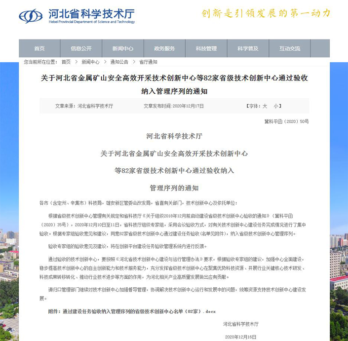 2020年12月16日,河北省兽用抗寄生虫药物技术创新中心(依托单位九鼎药业)通过建设任务验收并纳入省级技术创新中心管理序列。